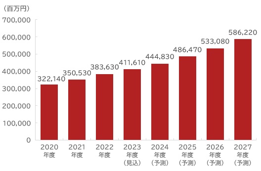 右肩あがりで成長しており、向こう数年も成長が続く予測となっています。